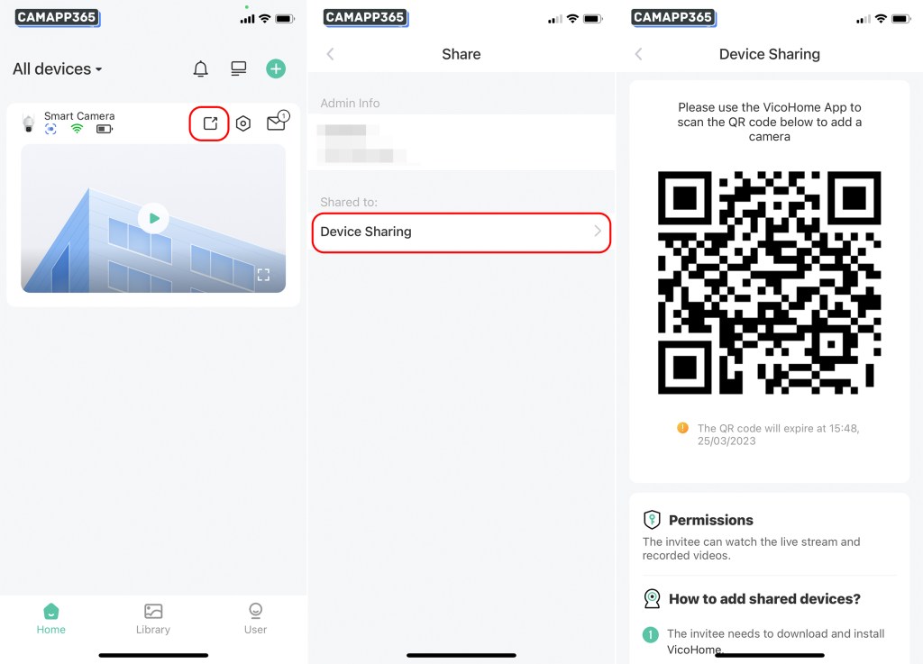 Sharing a camera allows multiple people to use the VicoHome Camera at the same time.