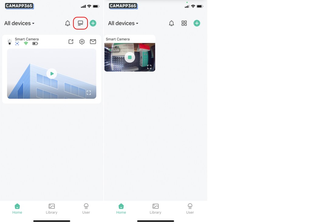 By clicking on the ‘blank‘ icon, you can watch multiple VicoHome cameras at the same time.