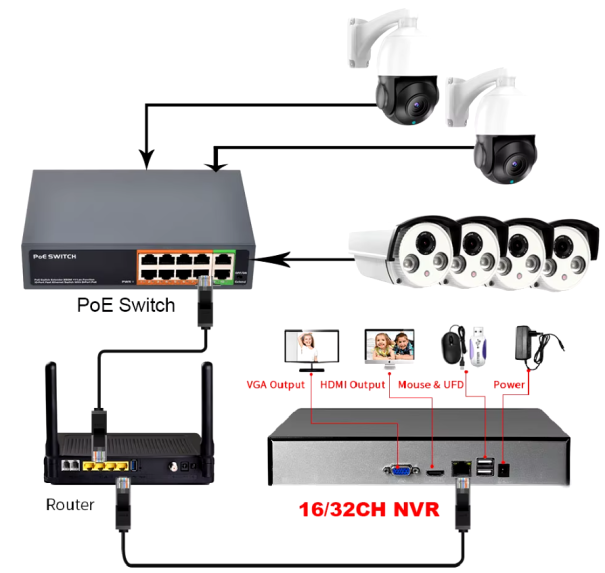 An NVR works by connecting to IP cameras through a network. These cameras can be connected via Ethernet cables or wirelessly through Wi-Fi, though wired connections are generally more stable. Once connected, the cameras send video data to the NVR, where it’s processed, compressed, and stored.