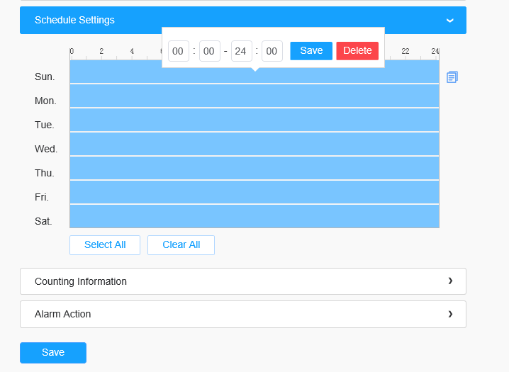 Step3: Set detection schedule, edit the schedule settings and choose when to count people.