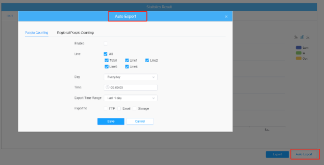 Click “Auto Export” button to pop up the Statistic Report Settings as shown below.