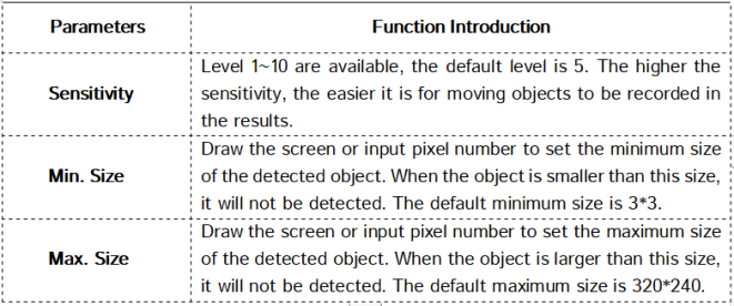 Step2: Set detection region, sensitivity and object size limits. The object size limits can refer to screenshot above;