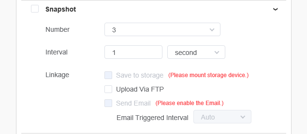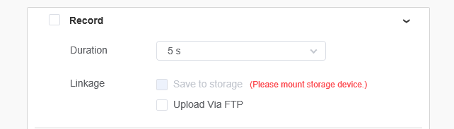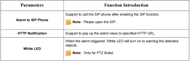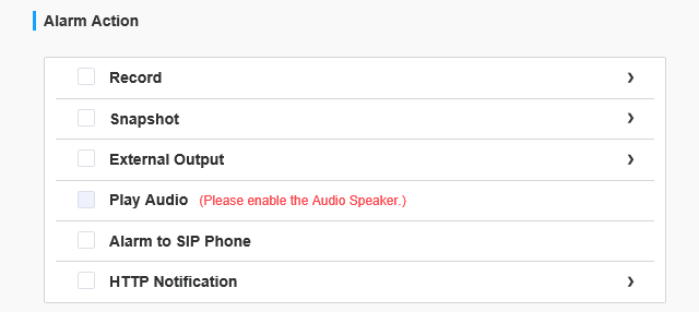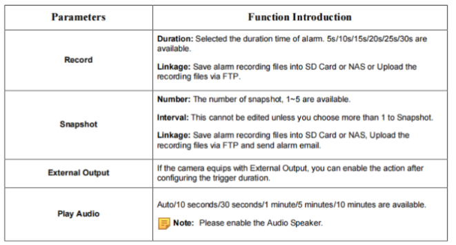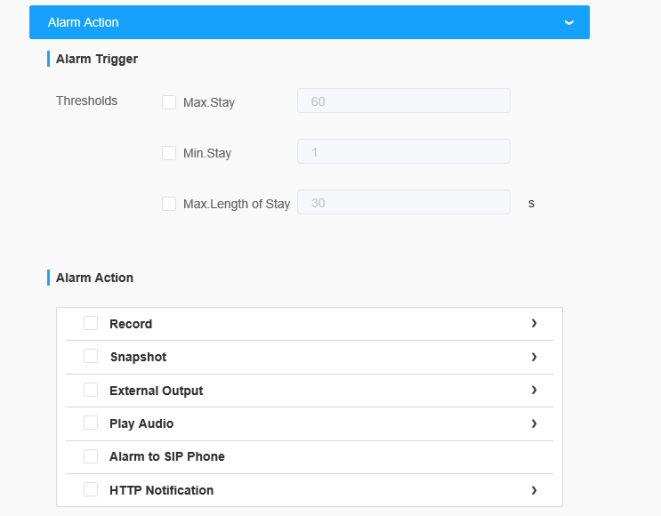 Alarm Action: Configure the specific actions of the camera when the alarm is triggered.