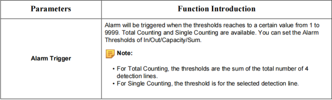 Alarm Trigger: You could chose the total counting or the single counting and set Thresholds first, and then you could do other settings.