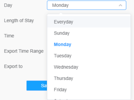 · Set Day. User can choose Everyday to export daily reports, while choosing others to export reports on a specific day of the week;