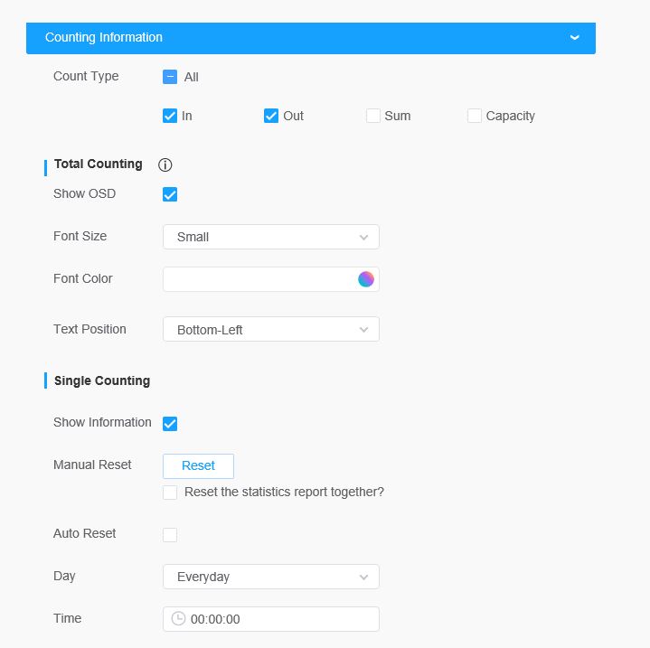 | Counting Reset | Reset the count of the OSD or the count of the report together | |
