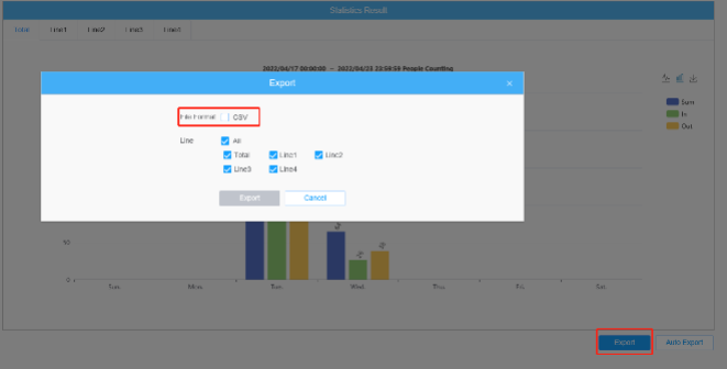 Click Auto Export to configure the time, range and direction for automatic export, which only supports CSV sheets.
