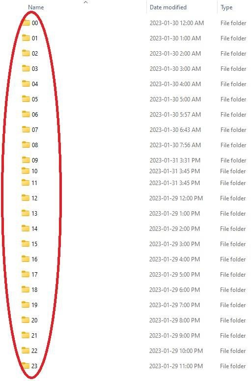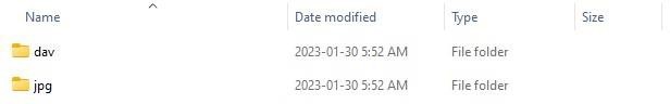 c. Within the folder, click either the day folder (Video files) or the jpg folder (Snapshots):