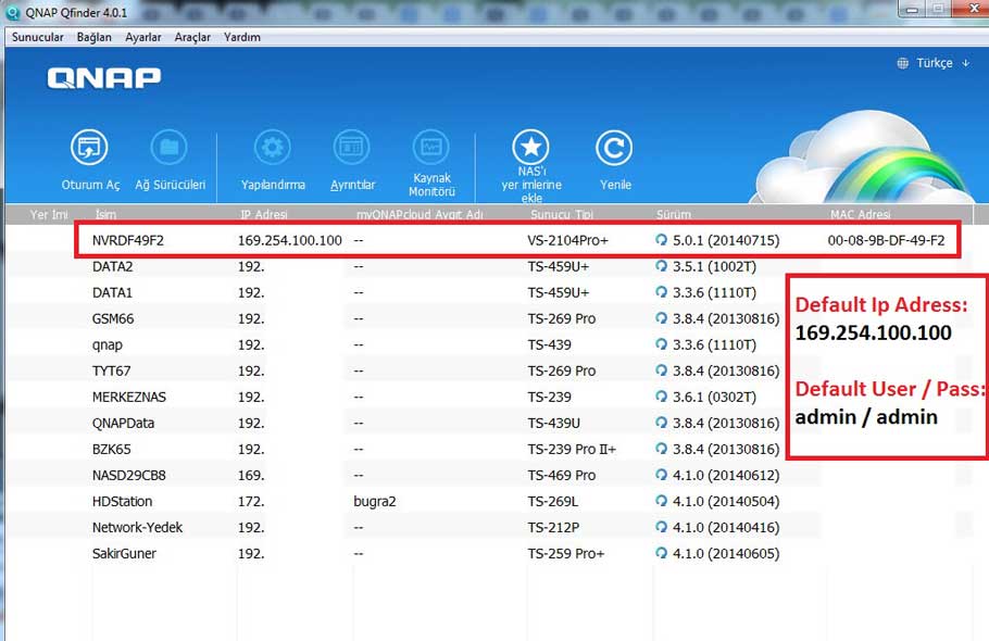 Default Qnap IP Adress: http:169.254.100.100