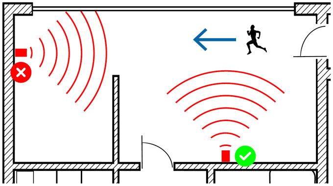 The ideal position of the camera is 7-8 feet high, pointing downwards at an angle to cover the area where people will be walking across the camera’s path, and pointing the lens away from direct sunlight.