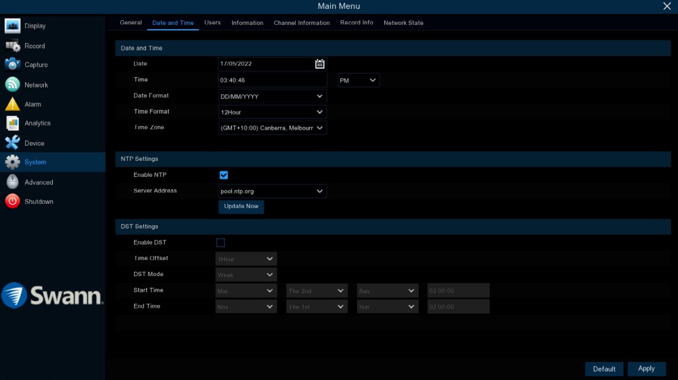 If your DVR does not have internet connection, we recommend that you set up the following manually: