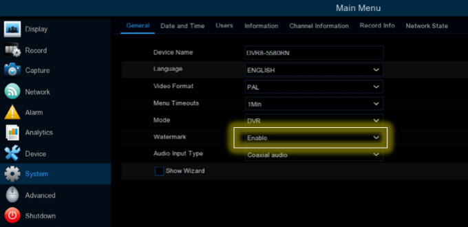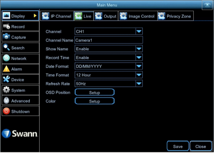 The position chosen for the Date and Time Display will be reflected on the live view on your computer screen, should you access the DVR through the Network Interface ( and also on the recorded videos if you have enabled record date from the Display menu of the DVR ).