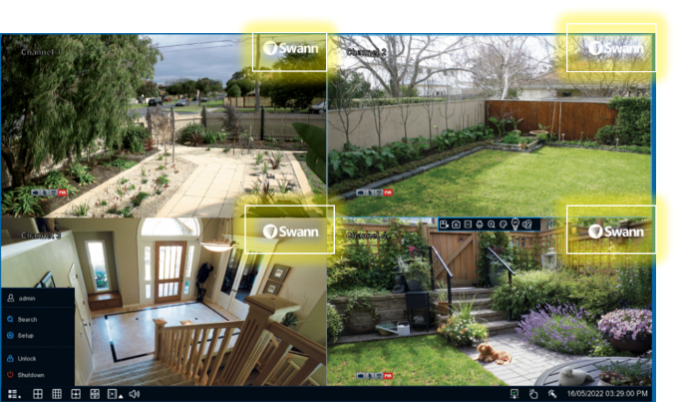 By default, the Swann logo is overlaid as a watermark for each camera.