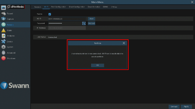 If successful, the recorder will be connected to your Wi-Fi. Click OK and Apply.