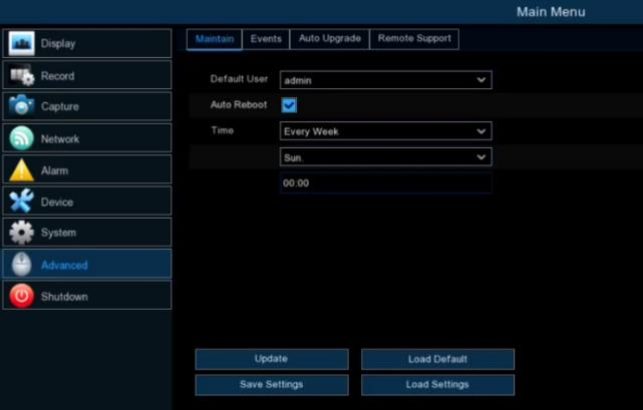 To load settings to default in recorder models, you must be logged into the recorder via TV and mouse or computer software.
