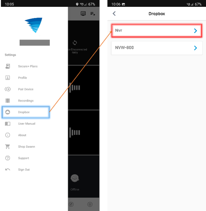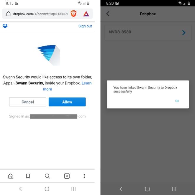 NOTE: A recorder with Agent version 4.2 and above that is paired to a Swann Security account with paid subscription will not have the Dropbox option as it will now use Swann’s Cloud server. Visit Why Is Dropbox No Longer Available in the Swann Security App to learn why.