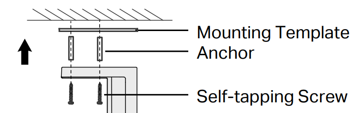 For wall mounting, insert four anchors into the holes and use the self-tapping screws to affix the camera base over the anchors.