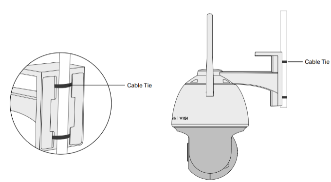 When the camera is installed outdoors, please install waterproof items to waterproof your VIGI outdoor security cameras. Make sure each part is securely attached and the water-proofing rings are flush to keep out water.