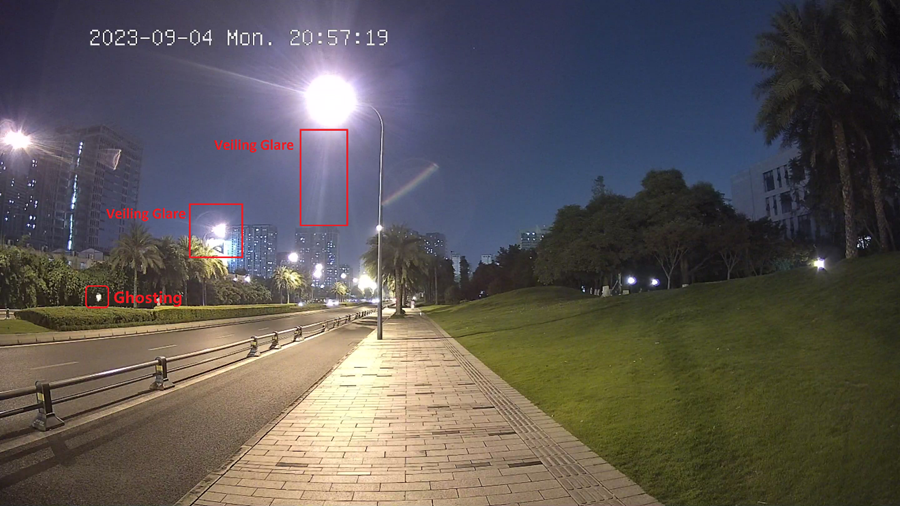 A: Both glare and ghosting occur when the point light source is too strong, causing light reflected from the lens surface to repeatedly reflect within the camera. These reflected lights cover the screen, reducing contrast and causing local obstruction, ultimately presenting as halos on the screen.