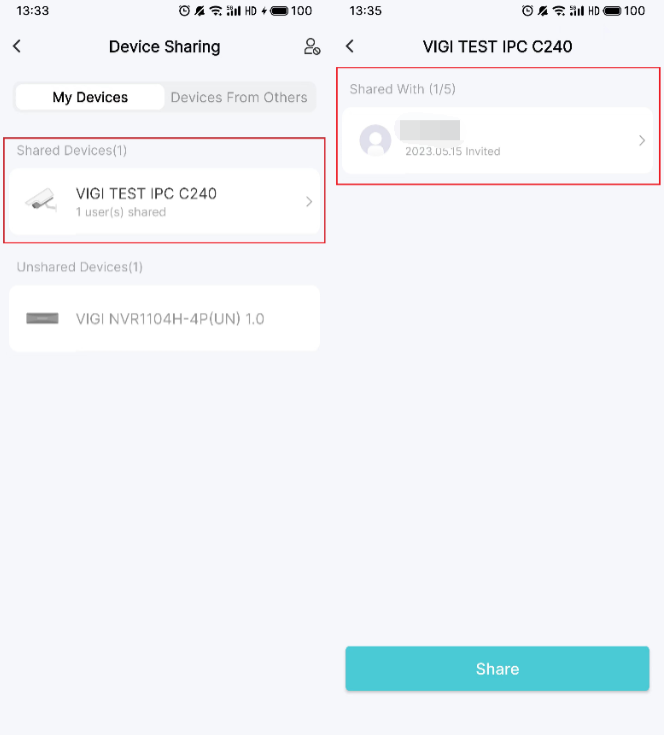 With the Device Sharing feature, you can invite your families to manage the VIGI devices together.