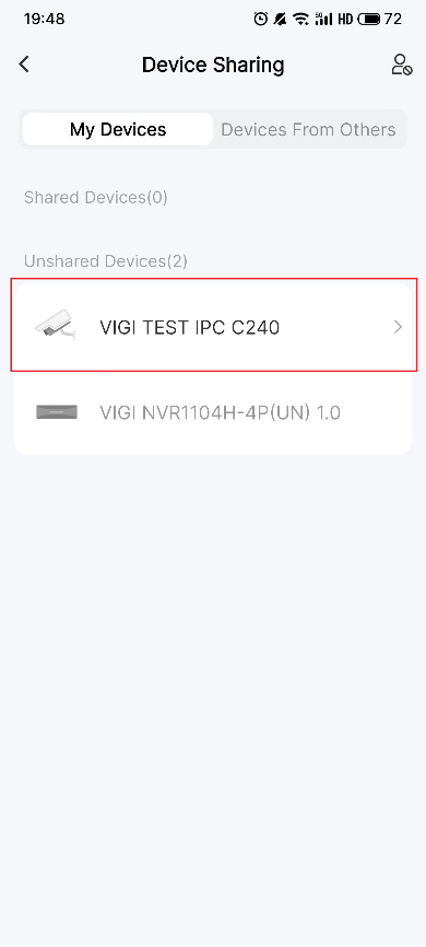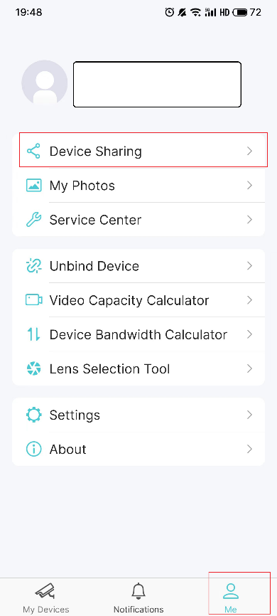 Step 1. On the Me page, tap Device Sharing and select the device you want to share.