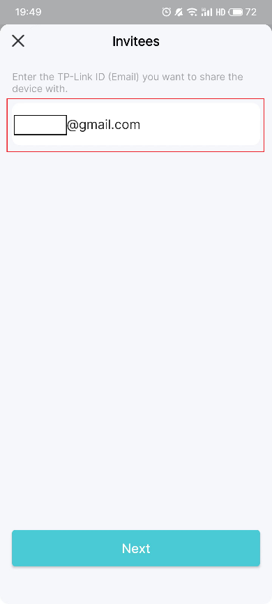 Step 2. Tap Share. Enter the invitee’s TP-Link ID, then tap Next.