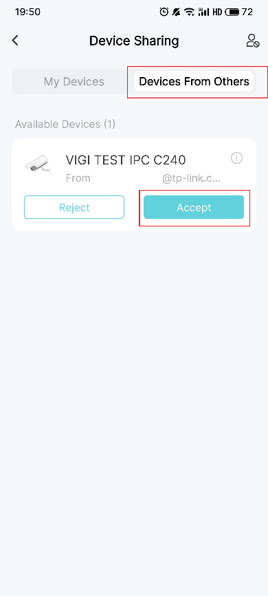 Step 5. Let the invitee log in to the VIGI app, check the invitation under Notifications and tap Accept. After that, the invitee can watch/manage this shared VIGI device.