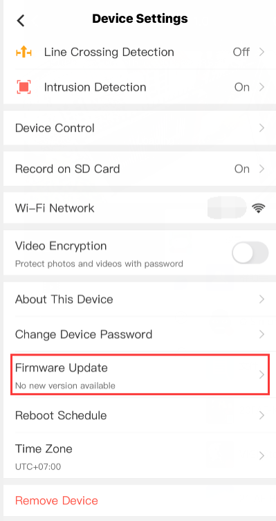 Step 2. Tap on Firmware Update on the Device Settings page.