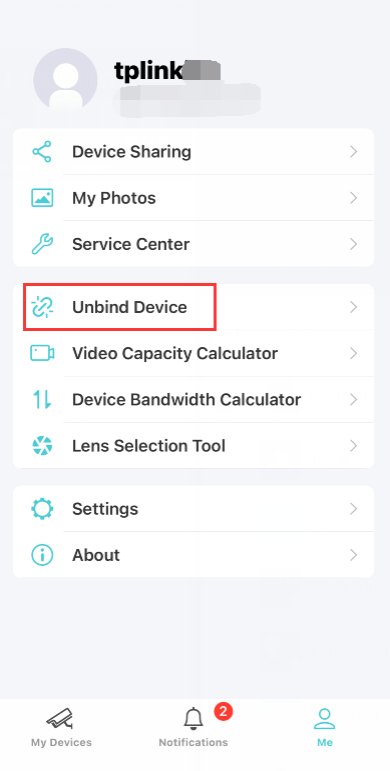 On the Me page, you can tap on Unbind Device to unbind your VIGI devices from your TP-LINK ID.