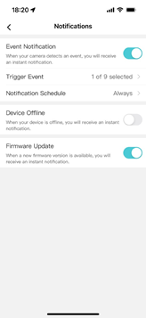 Step 1 Check your camera whether the Notifications is on your VIGI app.