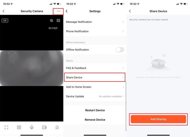 1. Click on the icon in the top right corner to enter the settings screen, select Share Device, click on Add Sharing.