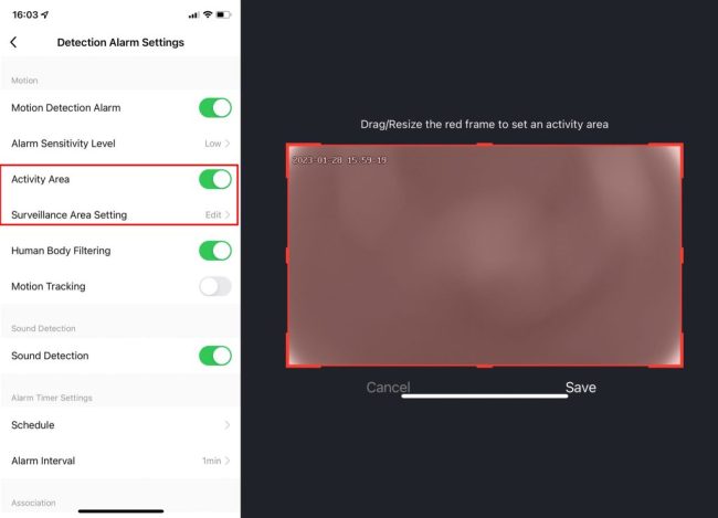 Detection Alarm Setting - set up Smart Life or Tuya camera