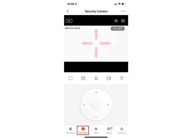You can swipe the video screen to control the camera movement, or click the Direction control button