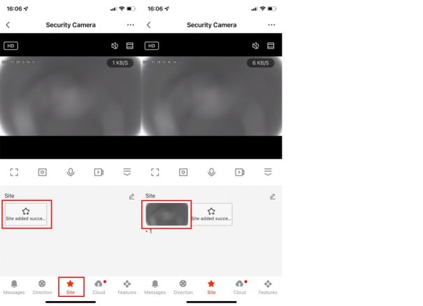 In the Site screen, click on Site added succe… Save the camera’s current location, so that you can move the camera to the saved location quickly by clicking on the picture.