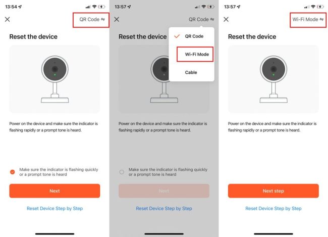 Not all Smart Life and Tuya cameras support Wi-Fi Mode connectivity, please contact your camera’s seller for details.