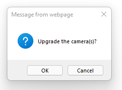You will be prompted to confirm the upgrade to your cameras. Please be aware that your cameras will need to reboot in order to complete their upgrade. Please allow for up to 15 minutes for your cameras to upgrade and reboot.