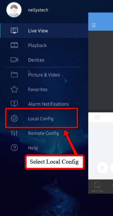 - Click the three lines in the top-left of the screen, this will bring out a pop-out menu. Select Local Config which should be the second option from the bottom.