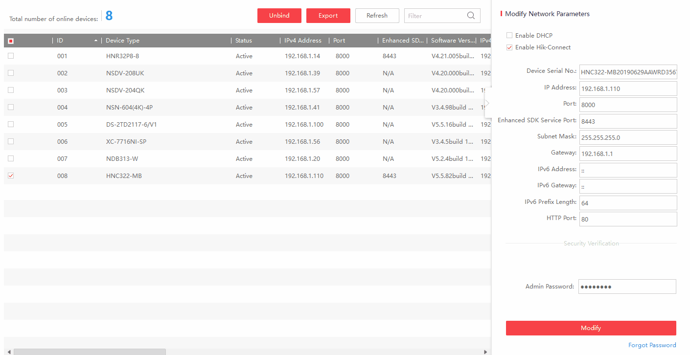 Once the camera is connected,run the SADP Tool and modify the camera’s IP address to match the internal subnet of the Uniview NVR (172.16.0.x)