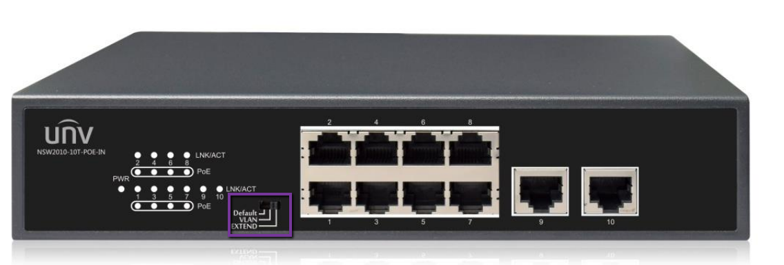 There is a small extended mode switch in the bottom corner of each uniview switch, this switch comes