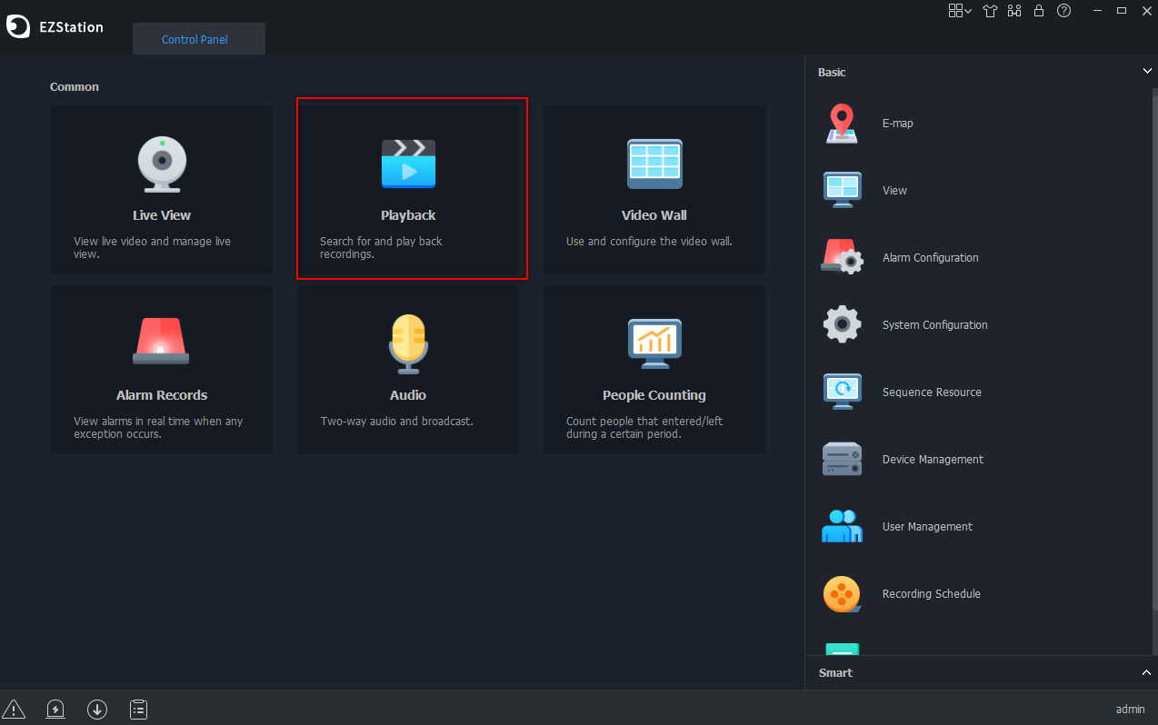 From the Control Panel, select the Playback Tab to access the playback section of EZStation.