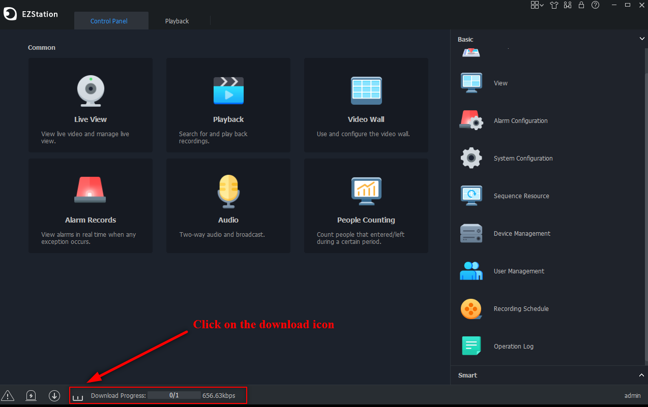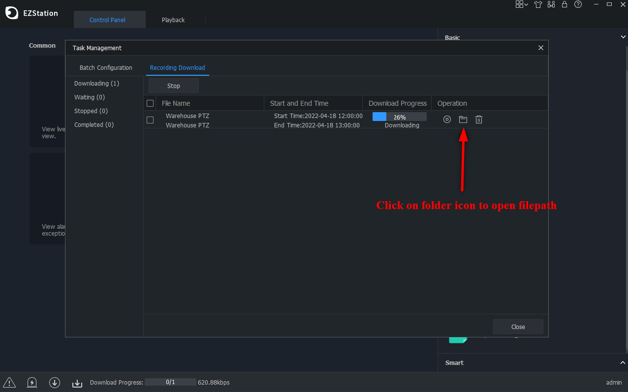To find where the saved exported footage went, you can select the Download Progress at the bottom of EZStation.