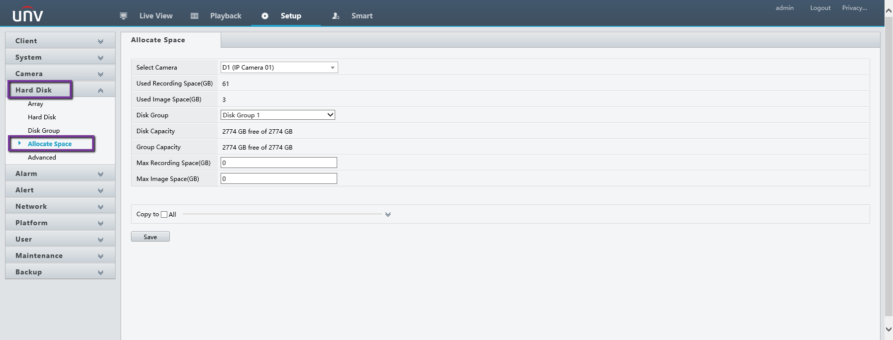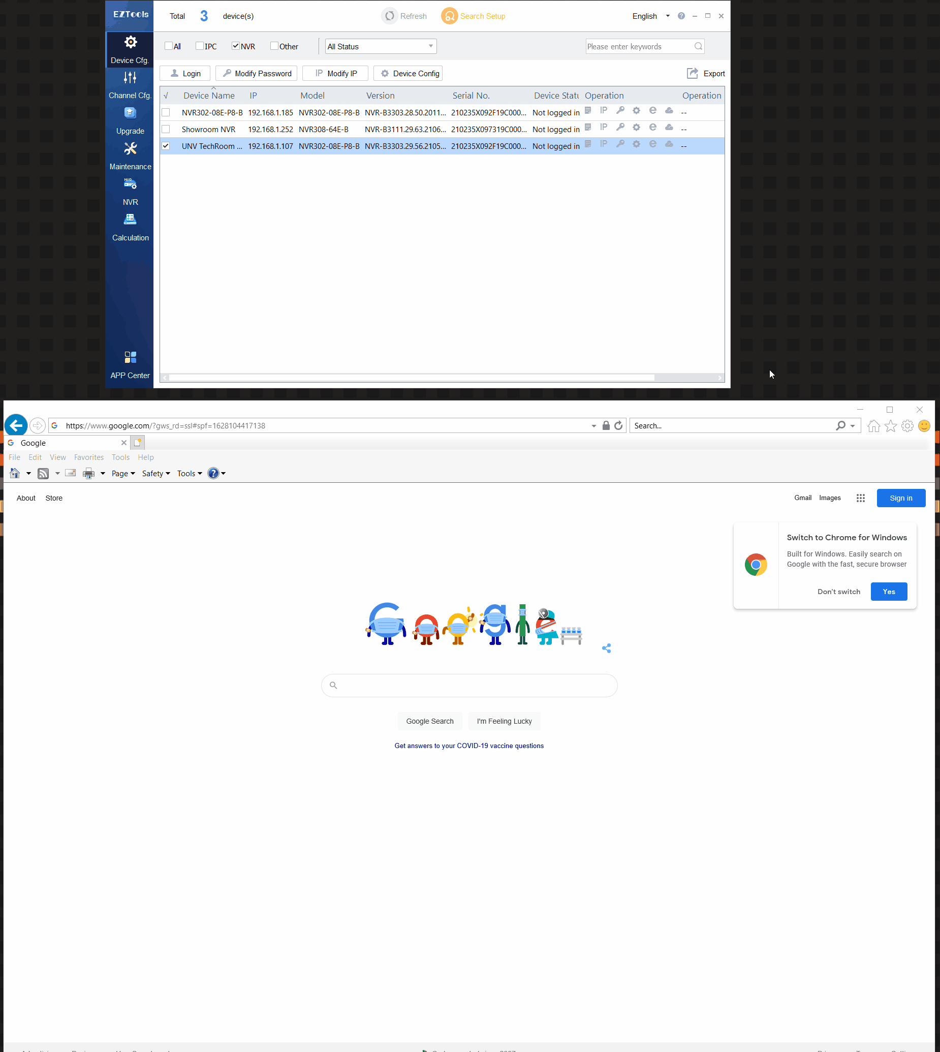 We are accessing the Uniview NVR via it’s web interface on Internet Explorer.