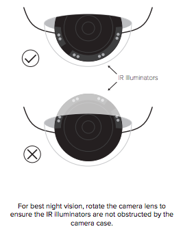 It is imperative that the dome remain free of debris and the camera is installed properly to achieve the best image quality. When viewing footage in night mode if the footage appears obscured it is most likely the result of one of the following scenarios: