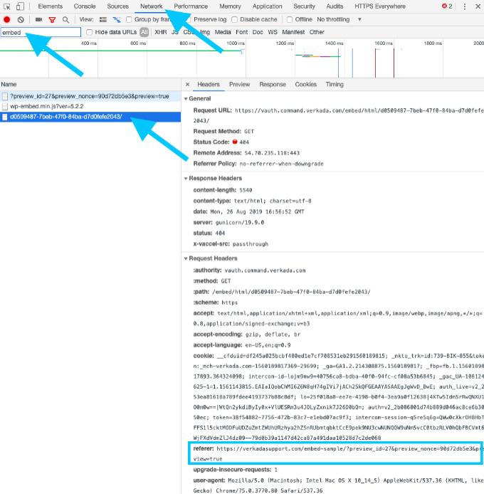When a user loads a webpage that contains a Verkada-embedded live stream, the page loads the URL of the embed in an iframe.