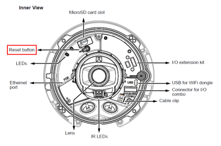 In the download section you will be able to find the “User manual” and the “Quick installation guide”, both documents have information regarding the location of the camera reset button.