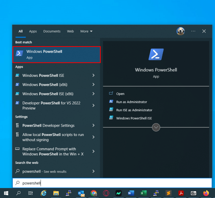Step 1. Open the Windows PowerShell, you can do it by typing “PoweSheel” in the start menu search: