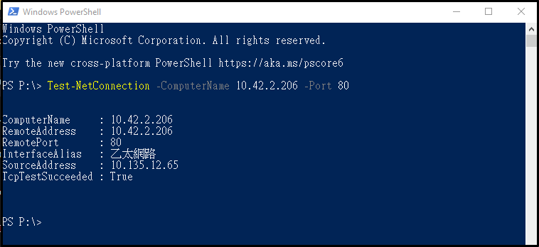 How to use PowerShell to test if the camera IP and ports can be accessed?