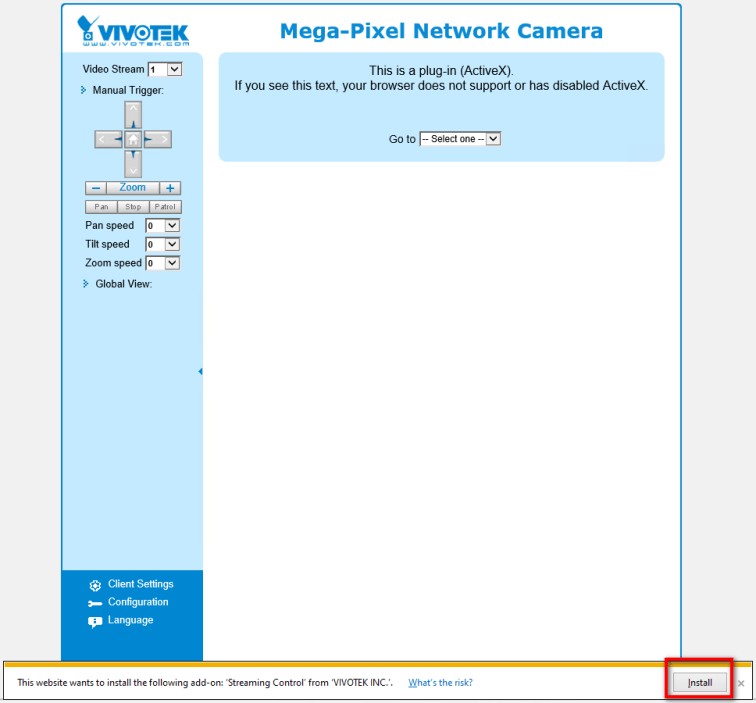 VIVOTEK legacy network cameras and Linux-based NVRs can only get streaming by installing plugins on Internet Explorer.