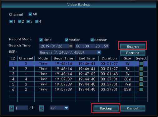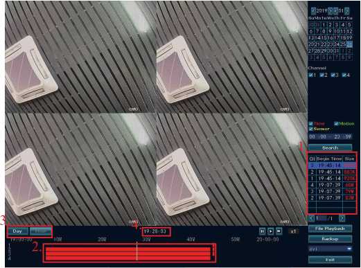 © Video backup: Choose the recording file in file list, as number “1 ” shown in picture. Insert the U flash disk, click “video backup” to backup the file;
