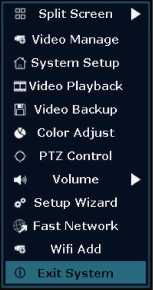 • Exit System: Logout, reboot, close screen output and shut down the system.
